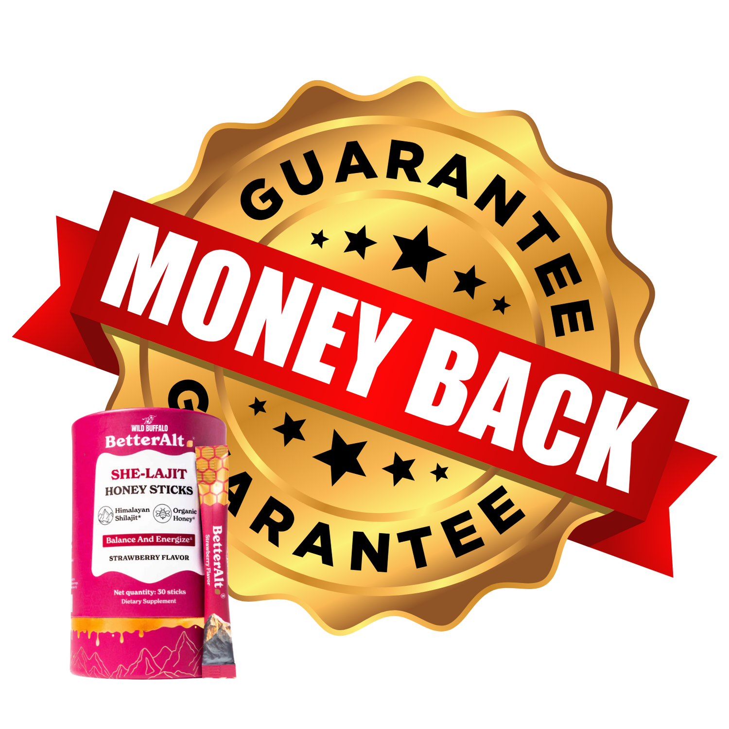 We’re confident that SHE-lajit Honey sticks™ will help you restore your energy, stamina, and peak performance—but we want you to feel completely at ease trying them.